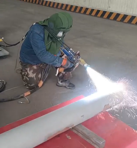 电弧高温防腐蚀耐磨喷涂技术是一种热喷涂工艺,核心是利用两根自耗金属丝电极间产生的电弧高温,将丝材熔化,再通过压缩空气将熔融金属雾化成微熔滴,高速喷射至工件基体表面,冷却后形成致密涂层,从而实现防腐蚀、耐磨的表面防护效果。